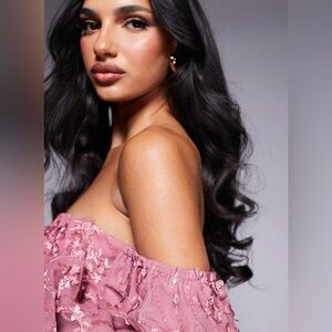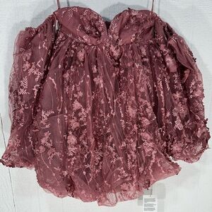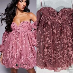 NWOT ASOS LUXE 3D embellished lace bandeau bubble hem mini dress in rose size 2