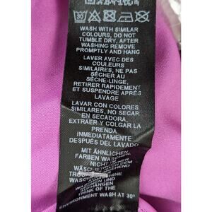Blouson silhouette with a pleated skirt. Fully lined. Pullover construction (no zippers or buttons). V-neck with faux buttons down front top. Nonadjustable spaghetti straps. Adjustable drawstring at waist. Comes with extra button and thread. New without tags—excellent condition, except for a snag created by the tag on the skirt portion (see last photo).
