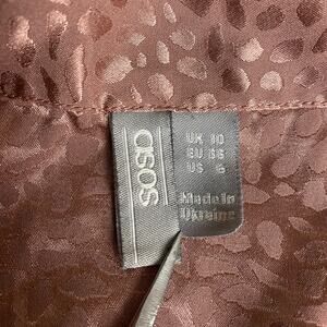 NWOT ASOS Satin Silk Pink Jacquard Animal Print Blouse Sz 6 Long Sleeve Shirt