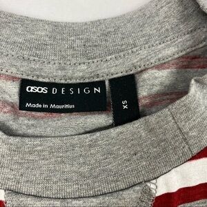 NWOT ASOS red and grey striped cotton t-shirt relaxed fit 24” pit to pit and 29” long
