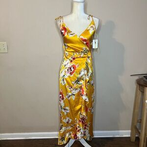 NWOT ASTR The Label Floral Satin Wrap Dress