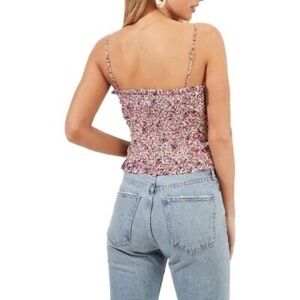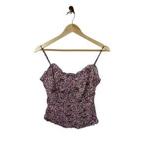 NWOT ASTR the Label Chiffon Ruched Ruffle Floral Blouse Fuchsia Ditsy Size M