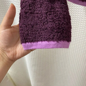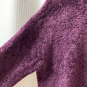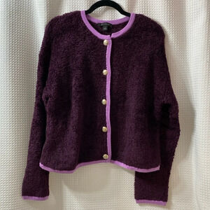 With an irresistibly plush fuzzy finish, our sweater jacket is a must-have topper. Crew neck. Long sleeves. Button front. Drop shoulders. Ribbed neckline, cuffs and hem.