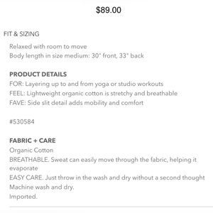 NWOT ATHLETA Yogi Side Slit High Low Hem