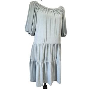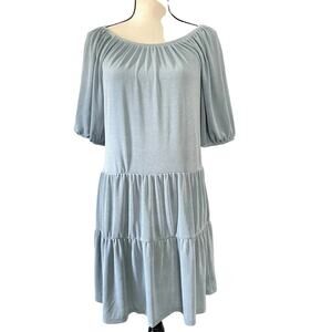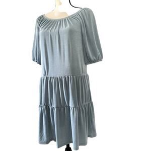 NWOT AVLN Studio Metallic Light Blue Tiered Baby Doll Dress Women Size Small