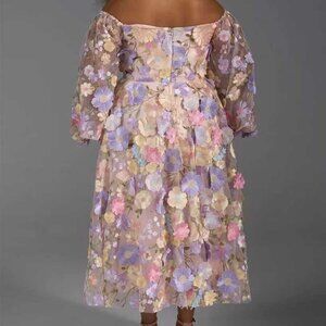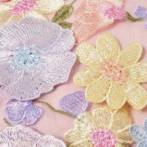 Adorn your moments in a tapestry of petals with our floral tulle dress, cut in a refined A-line and finished with a sleek straight neckline for a touch of modern romance.