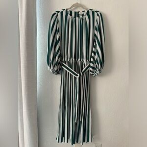 NWOT AYR The Who's She Green Regatta Stripe Pleated Midi Dress Size Xs