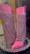 The AZALEA WANG " JACLYN " Embellished Stiletto Boot In Fuchsia is an enticing, glimmering below-the-knee pair featuring a faux leather base and a rhinestone chainmail covered shaft with a back lace-up detail. Complete with a pointed toe, a slightly covered slim stiletto heel, and side zipper closure. Pair with mini dresses and mini bags for an extra edge. - All Man-made Materials