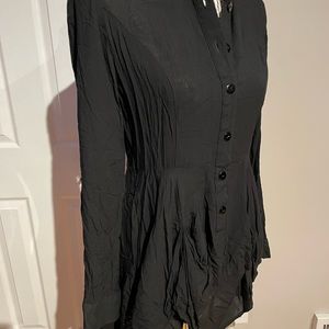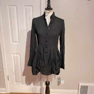 NWOT Aakasha Dare to wear Asymmetric Lines presenting an Unique piece of Art Rave Goth Shirt Mock Buttoned long sleeve Fit Flare Overlay Pleated Avant-garde Futuristic modern minimalist street wear
