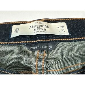 The NWOT Abercrombie & Fitch Madison Perfect Stretch Women's Size 6S W 28 L 31 jeans are a stylish and versatile addition to any wardrobe. Made with a comfortable cotton blend denim fabric, these bootcut jeans feature a 5-pocket design and a stylish zipper closure. With a flattering 8-inch rise and a regular fit, these jeans are perfect for all seasons and can be easily machine washed for convenience. The classic blue color and solid pattern make them a timeless choice for any casual outfit.