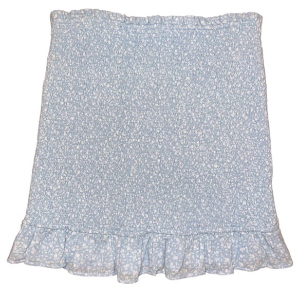 Flirty and fun, this Abercrombie & Fitch mini skirt in a muted blue neutral hue is perfect for adding a slight pop of color to your wardrobe. It features a charming floral pattern that brings a touch of whimsy to any outfit. Ideal for brunch dates, casual outings, or summer festivals, this skirt is a versatile addition to your closet.