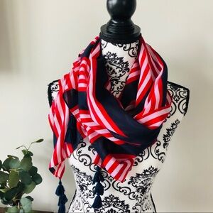 NWOT! Abercrombie & Fitch Tasseled Striped Square Scarf - Red/White/Blue