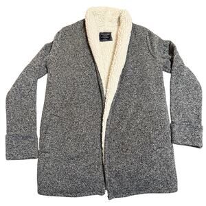 NWOT Abercrombie & Fitch Women Cardigan Sherpa Sweater Size Small Gray White Collared Cozy Soft Academic Librarian Student Office Classic
