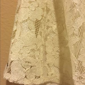 Pretty, shiny, and just a little glittery. This is an adorable floral lace skirt from Abercrombie and Fitch. It's got cream luminescent lace and has super subtle silver sparkles on it, with a cream slip below it. Stretchy elastic waistband. Fits true to size! UNWORN NWOT