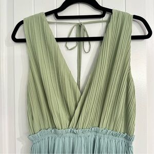 NWOT Adelyn Rae Pastel Green and Blue Tiered Midi Sleeveless Dress