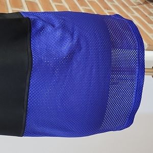 This mesh jersey tank is see-through on the bottom and top panels. Color is a deep blue/purple with black mid-section and black&white floral pattern inside the numbers on the front.