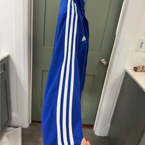 Bold royal blue jacket with classic Adidas stripes. Features embroidered phillies logo on chest. Ideal for sports or casual wear.