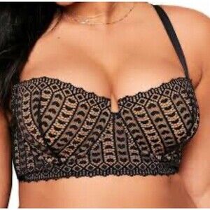 NWOT Adore Me Nymphadora Contour Balconette Bra Underwire Black Heart Lace 40DDD
