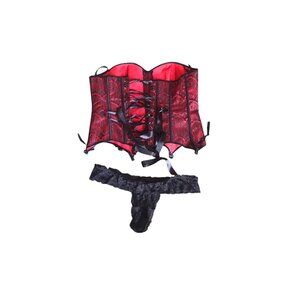 NWOT Adore Me Red and Black Corset Lingerie Set