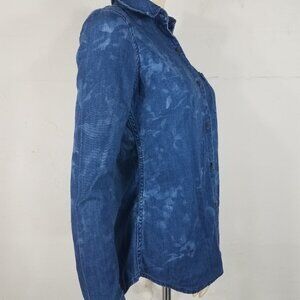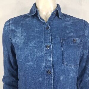 NWOT Adriano Goldschmied blue bleach tie dye button front denim shirt ladies XS