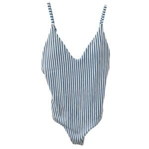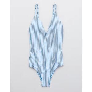 NWOT Aerie M Terry Striped Scoop One Piece Cheeky Swimsuit Blue White