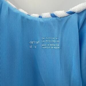 NWOT Aerie M Terry Striped Scoop One Piece Swimsuit Blue White. Hygienic liner is intact. No flaws to note.