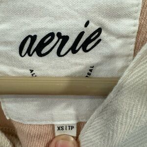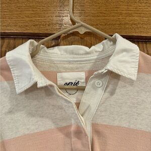 NWOT Aerie Prep Rally Rugby Sweatshirt, Heather Tan & Pink
