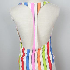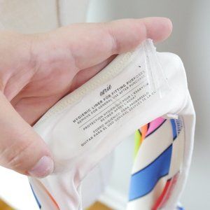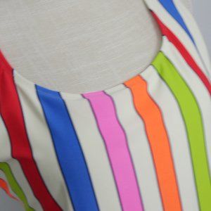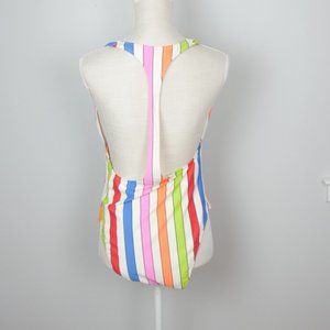 NWOT Aerie White Neon Rainbow Striped Full Coverage One Piece Bathing Suit XL