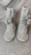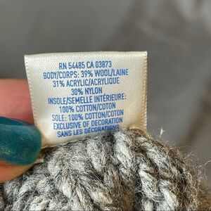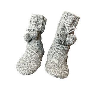 New without tags. Solid Gray. Silver. Fringes and tassels. Grip bottom. Wool blend. NEW. NEW WITHOUT tag. Never worn. Perfect condition. No rips no stains no holes no fades. Measurements are approximate. Length of tip of slipper to heal 10 inches. Height 10-11 inches.
