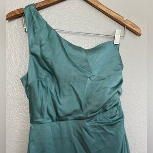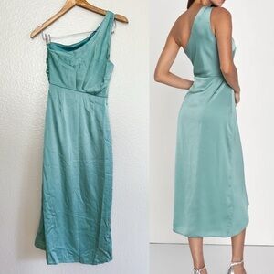 NWOT Aesthetic of Elegance Dark Sage Ruched One-Shoulder Midi Dress