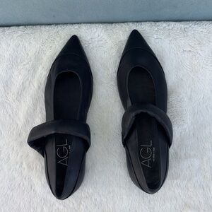 NWOT Agl Rocio Mary Jane Black Pointed-Toe Flats Leather EU 35.5