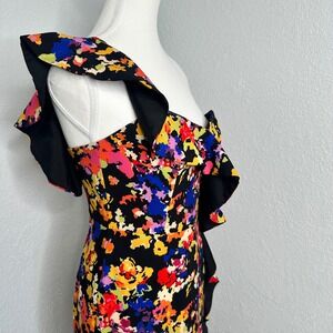 NWOT Aidan by Aidan Mattox Floral One Shoulder Ruffle Bodycon Midi Womens Size 2