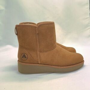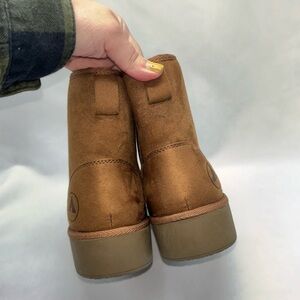 Great condiions NWOtT Air walk slip on booties. No rips or bad odor. Small stain on the toe of the right boot. Super cozy inside. Small 1" platform. Great to pair with jeans.Color light brown. Please see pictures for more details.