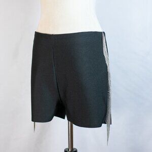 Stunning black shorts by Akira with rhinestone fringe side terimed.