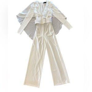 Beautiful NWOT Akira White Cape Jumpsuit with Wide Gold Buckle