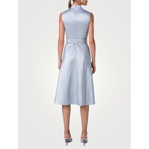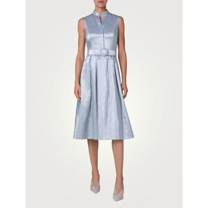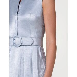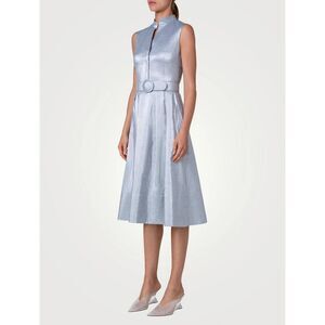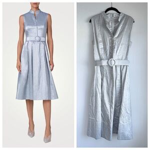 NWOT Akris Punto Silver Metallic Cotton Linen Blend Sleeveless Belted Midi Dress