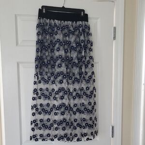 Elevate your wardrobe with this elegant lace navy blue and white floral midi skirt.