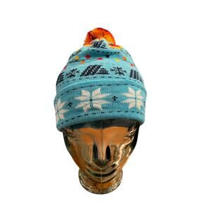 NWOT Aldi Gear Winter Knit Hat Pom Pom Snowflake Xmas Lights Blue One Size