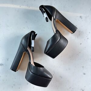 New without tag/box. In excellent condition. Sky high heels! Closed toe. Heart charms on the ankle straps.