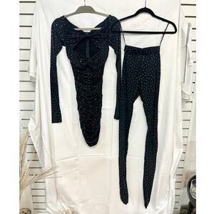 Alex Perry Long Sleeve Embellished Cutout Bodycon Minidress & Leggings Set Black Women's Size 8 UK / US 4