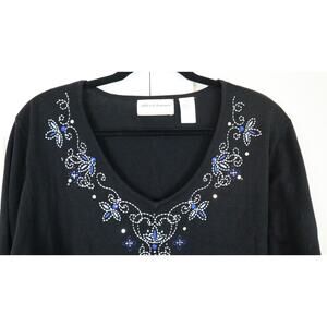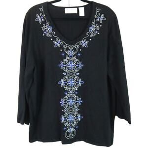 Pit to pit 25", Length 26.5". NEW WITHOUT TAGS! Excellent condition! NWOT Alfred Dunner Black & Blue Blouse Beaded Embroidered 3/4 Sleeve Plus 1X