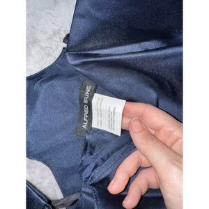 NWOT Alfred Sung SZ 6 Midnight Navy Blue Dress One Shoulder Satin Trumpet Gown