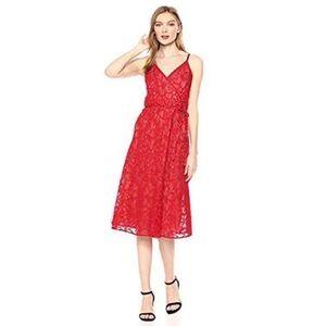 NWOT Ali & Jay Women's Faux Wrap Contrast Red Lace Fit & Flare Midi Dress size L