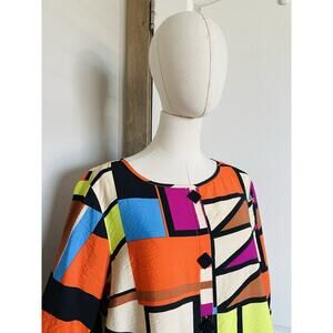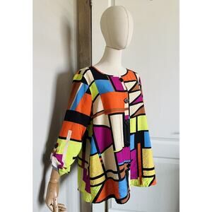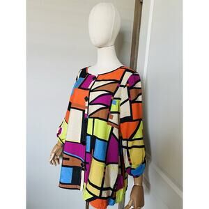 NWOT Ali Miles S Multicolor Abstract Print 3/4 Roll Tab Sleeve Tunic Top Artsy