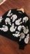 Cropped pullover sweater with contrast textured rose embroidery