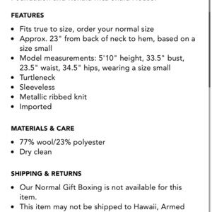 NWOT Alice & Olivia Darcey Black Turtleneck Sweater Tank- Large