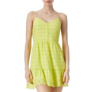 NWOT Alice + Olivia FAE SPAGHETTI STRAP MINI DRESS in lime green SZ 4