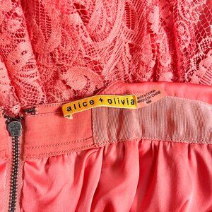 NWOT Alice & Olivia Odette Cross Back Salmon Lace Dress
