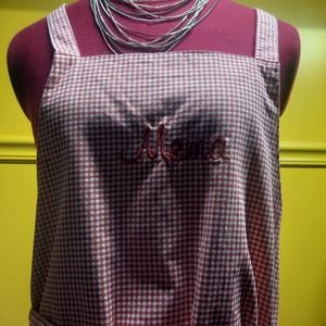 NWOT All Heart Red White gingham apron with Mema embroidered I patch pocket on front right. A present for your favorite cook.