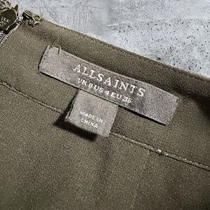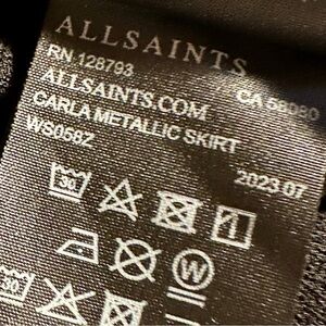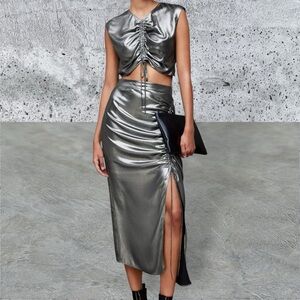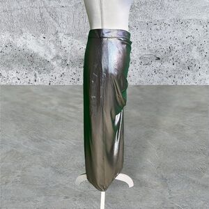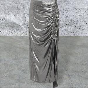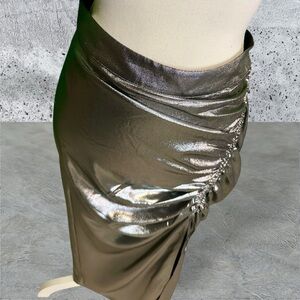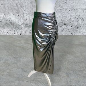 NWOT All Saints ‘Carla Metallic Gray / Silver Skirt’ with Ruched Side Size 4